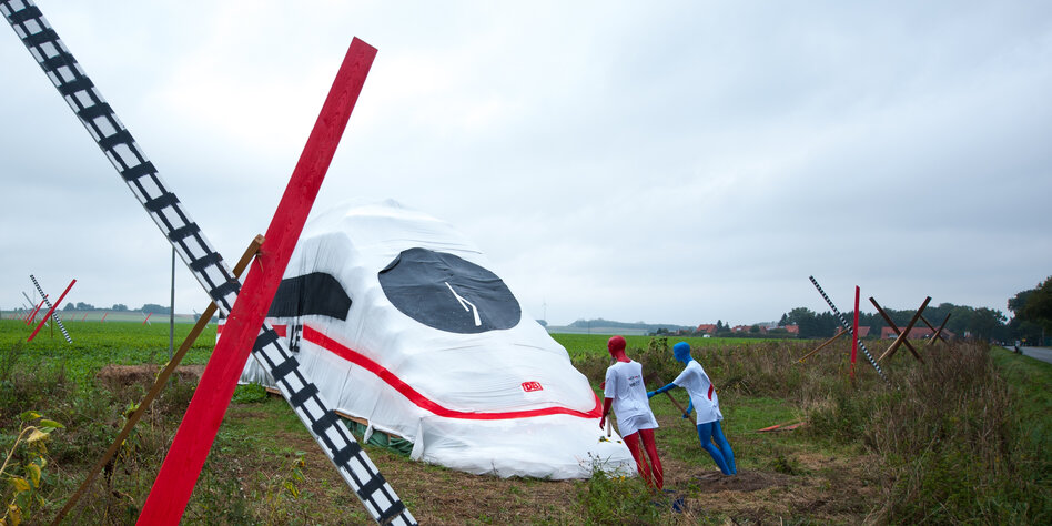 IMG Bild: Ein X gegen die Y-Trasse: Protest bei Uelzen gegen ein neues Schienenprojekt.