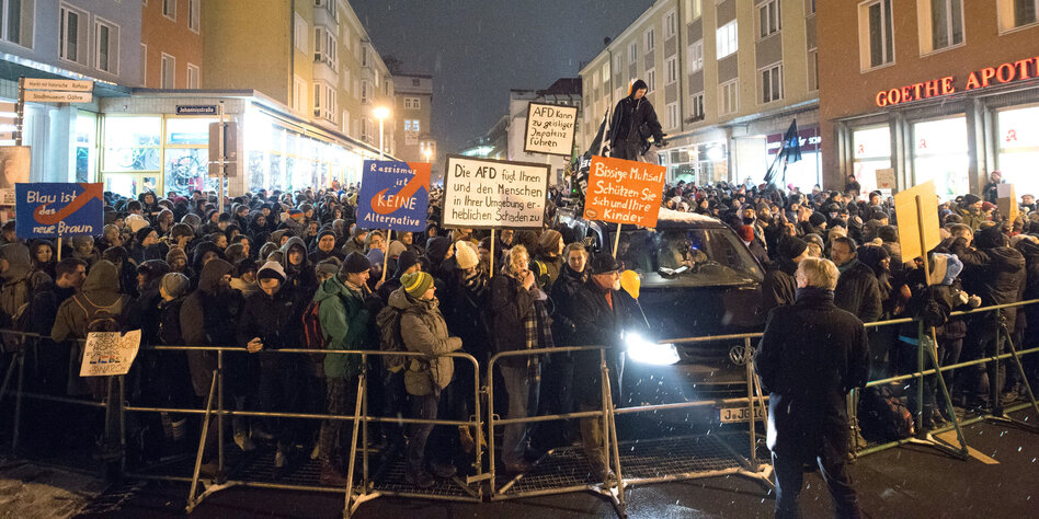 Alternative für Deutschland (AfD) haben am Mittwochabend in Jena laut