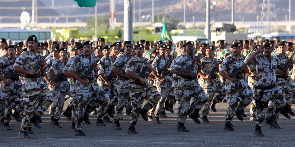 IMG Bild: Paradebeispiel: Saudi-arabische Soldaten zeigen, wie gut sie marschieren können.