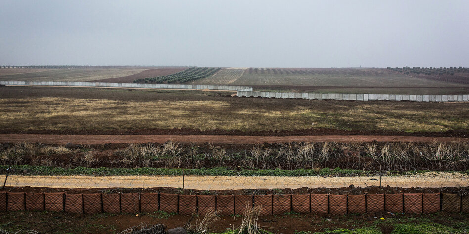 IMG Bild: Bald Aufmarschgebiet für türkische Soldaten: syrisches Terrain vor den von der Türkei errichteten Grenzbefestigungen