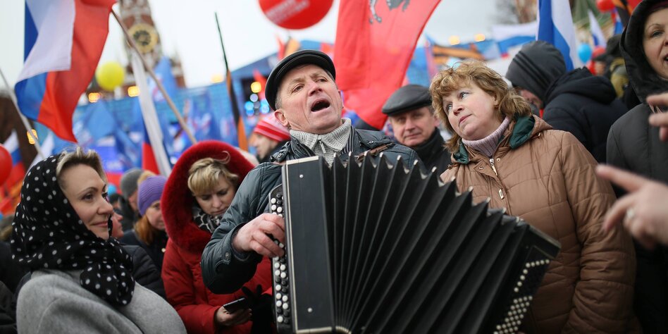 IMG Bild: Nicht alle haben Angst: Auf dem Roten Platz in Moskau wird am 18. März das zweijährige Jubliäum des Krim-Referendums gefeiert