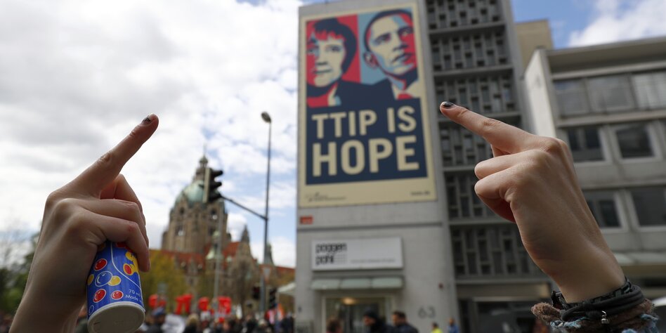 IMG Bild: Mittelfinger gegen Freihandel: Anti-TTIP-Protest in Hannover