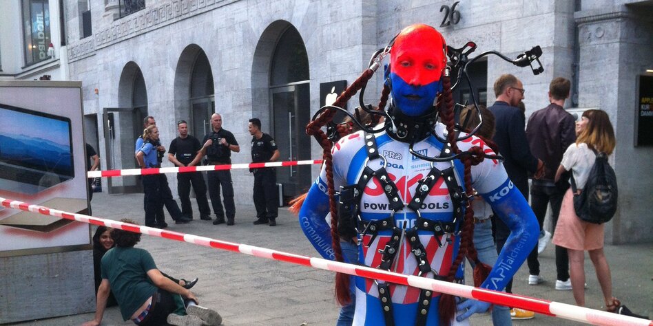 # taz.de -- Polizeieinsatz nach Performance in Berlin: Kunstaktion legt Apple-Store lahm