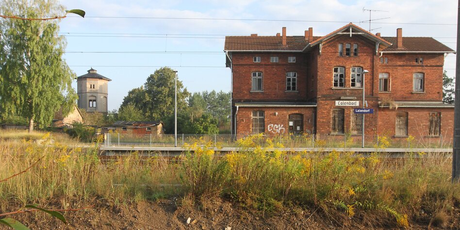IMG Bild: Ungenutzt: das Bahnhofsgebäude von Lalendorf bei Güstrow