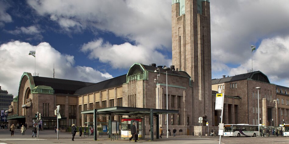 10. September in der City der finnischen Hauptstadt vor dem Eingang zum