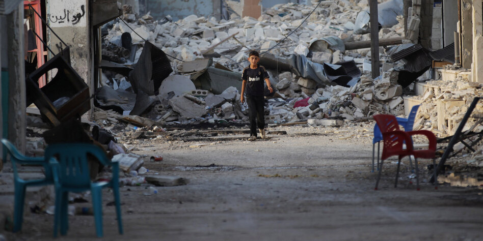 IMG Bild: Wieviel bleibt stehen? Ein Junge in Aleppo