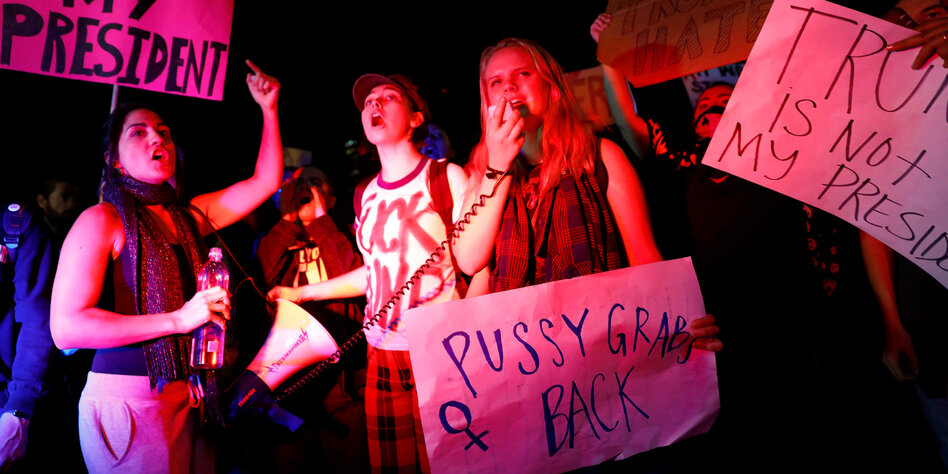 > Vor allem Frauen gehen gegen Trump auf die Straße. Sie demonstrieren