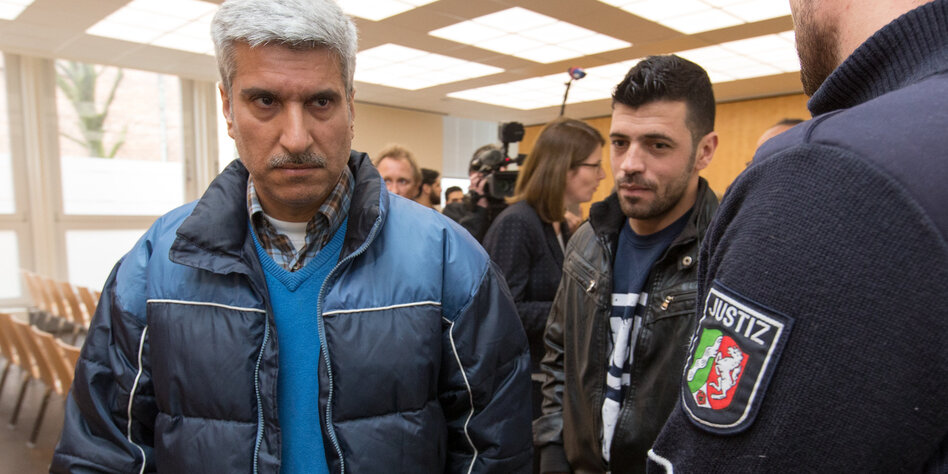 IMG Bild: Enttäuscht: der klagende Syrer (l.) und ein Dolmetscher (r.) nach dem Urteil in Münster