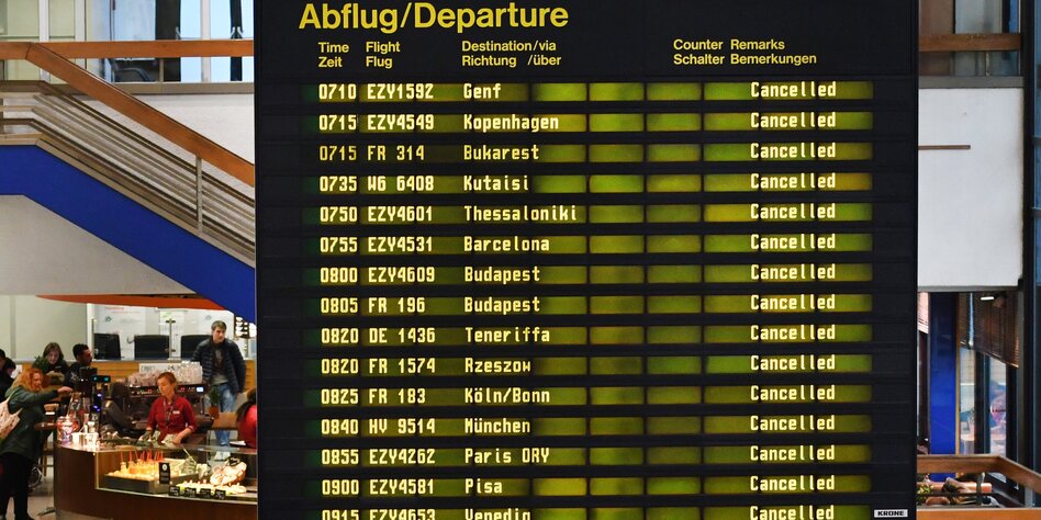 Bodenpersonal. Fast alle Flüge fielen aus. Viele Passagiere waren darauf