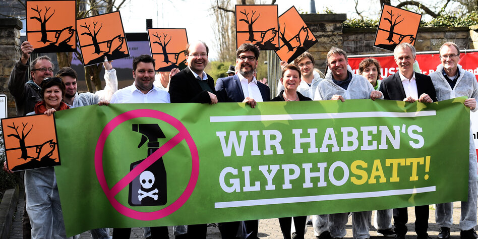 IMG Bild: Viele in der EU sind gegen den Einsatz von Glyphosat – wie hier deutsche PolitikerInnen