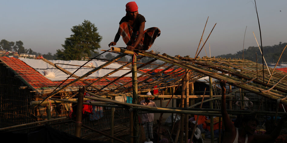 IMG Bild: Rohingya-Flüchtlinge bauen in einem Lager in Cox's Bazar ein provisorisches Haus