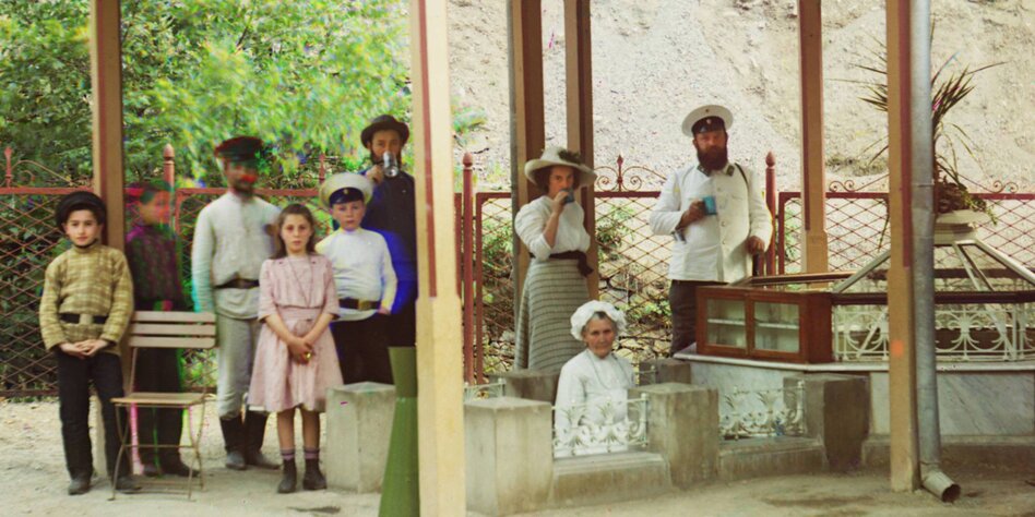 IMG Bild: Borjomi, 1910. Rechts im Bild: eine der Heilquellen