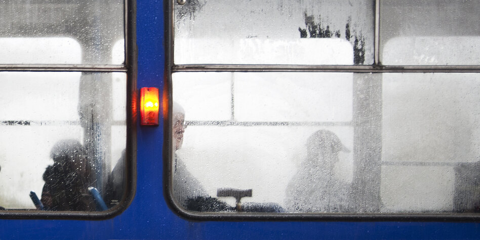viel in Riga. Ich habe Menschen durch die beschlagenen Scheiben einer