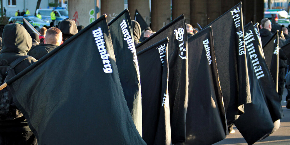 Reichskriegsflagge und der Parole „Ausländer raus“. Nicht nur die Sängerin