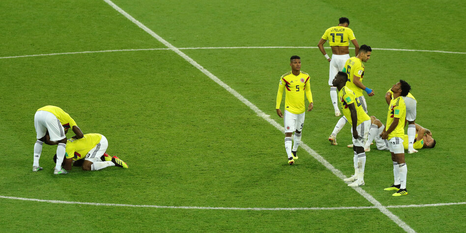 IMG Bild: Das ist das Ende. Kolumbiens Spieler nach dem Elfmeterschießen