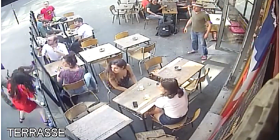 Es ist eine erschreckende Szene, die von der Überwachungskamera des Cafés