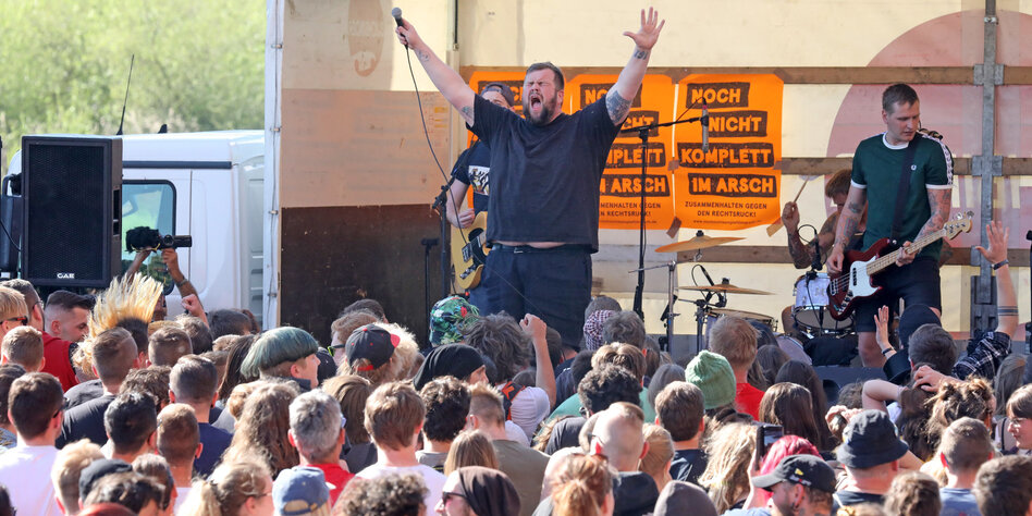 IMG Bild: Demmin in Mecklenburg-Vorpommern im Mai: Auftritt der Band „Feine Sahne Fischfilet“