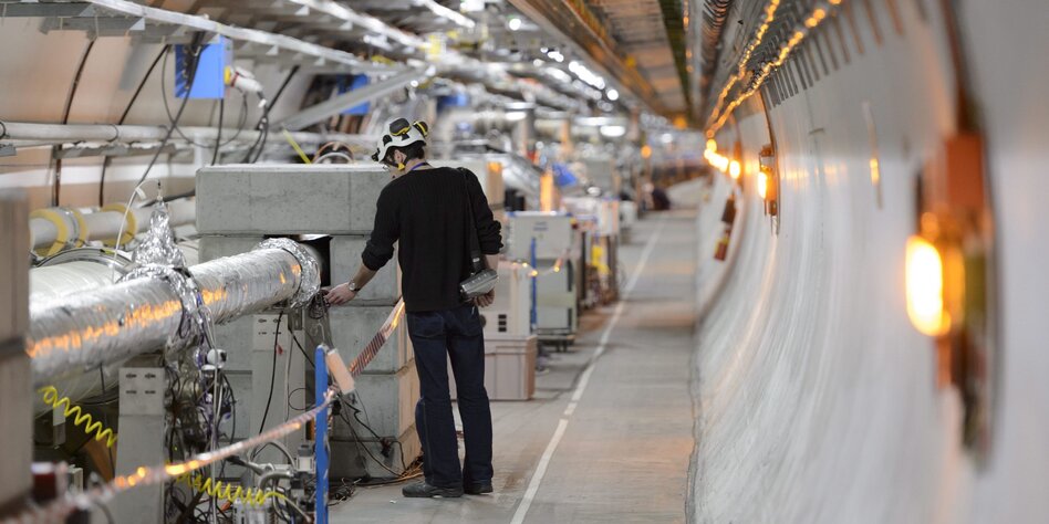 IMG Bild: Aufwändige Forschung: Techniker in einem Tunnel für den Teilchenbeschleuniger Cern