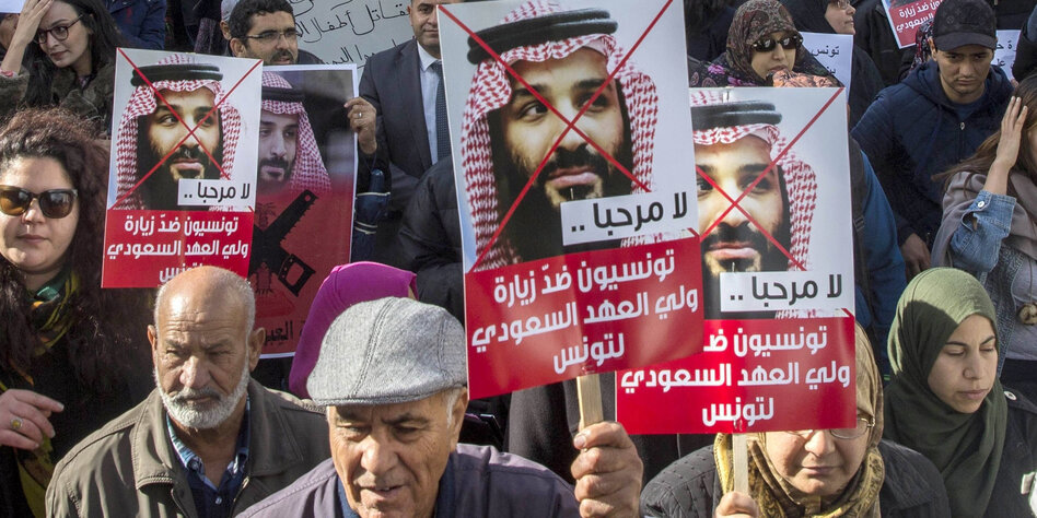IMG Bild: Auch in Tunesien nicht so recht willkommen: Proteste gegen Muhammad bin Salman in Tunis am Dienstag