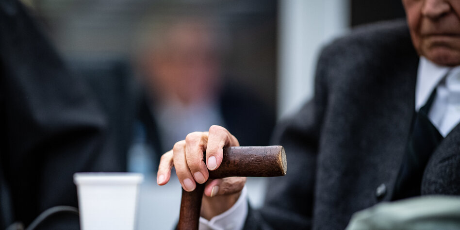 IMG Bild: Geht am Stock: Ob der angeklagte Johann R. Blut an den Händen hat, wird sich nie klären