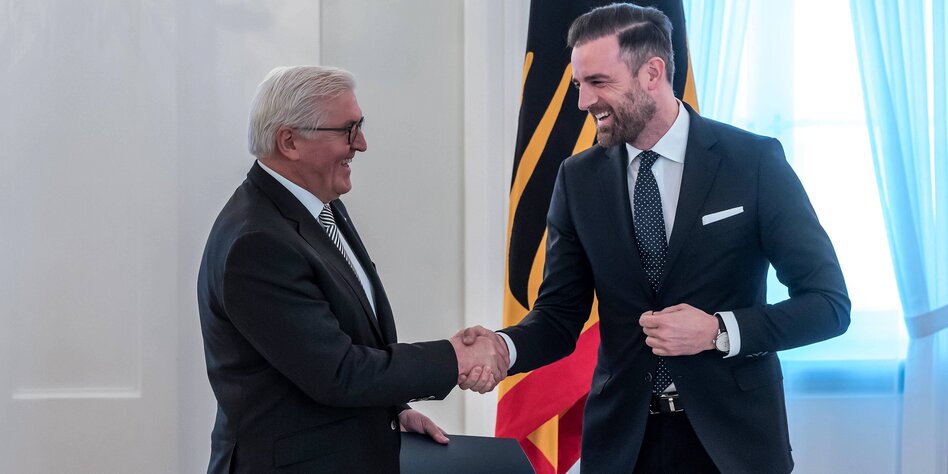 IMG Bild: Der Kicker und sein Präsident: Christoph Metzelder und Frank-Walter Steinmeier