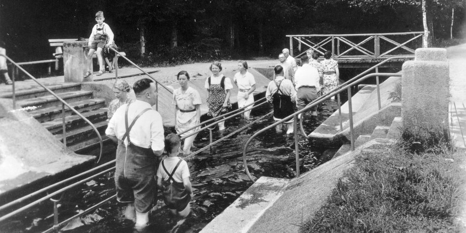 IMG Bild: Immer im Kreis herum: Kurgäste beim Wassertreten in Bad Wörishofen 1935