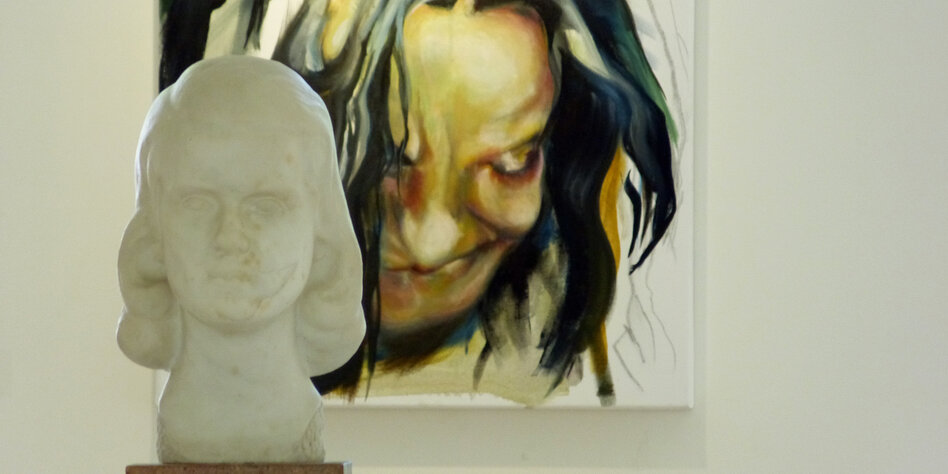 IMG Bild: Ausstellungsansicht mit einer Büste von Milly Steger und „Zschäpe in Öl“ von Else Gabriel