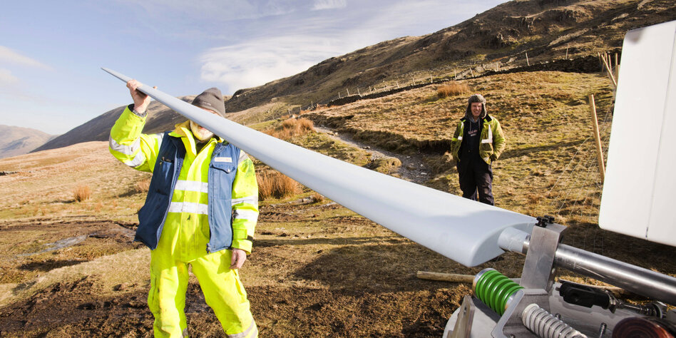 IMG Bild: Immer mehr sauberer Strom: Aufbau einer Windkraftanlage im Lake District