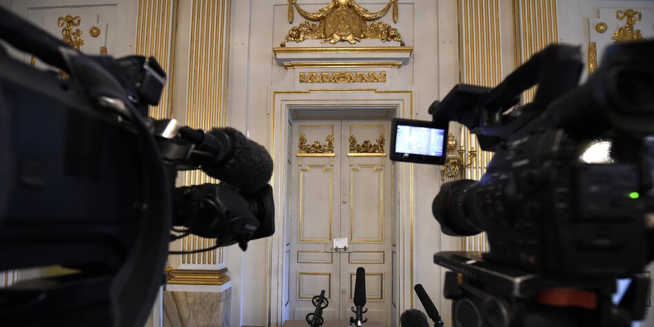 Flügeltür öffnet, vor der die Weltpresse wartet, wird es erstmals Mats Malm