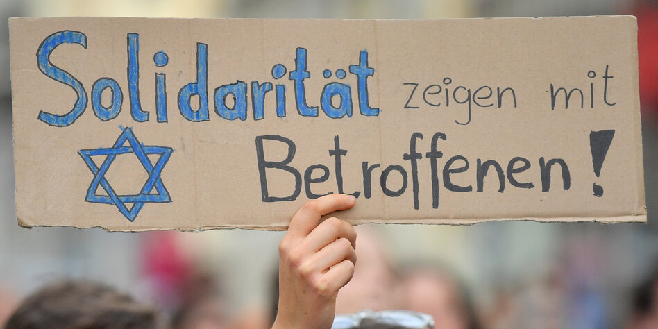 IMG Bild: Antisemitismus allerorten: Schild einer Demonstrantin nach dem Anschlag auf die Synagoge in Halle