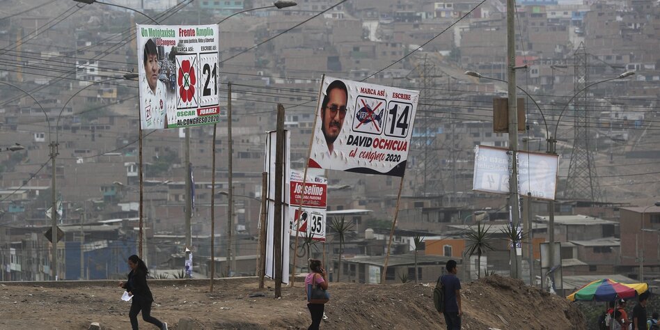 IMG Bild: Große Plakate in der peruanischen Hauptstadt Peru werben für die Parlamentswahl