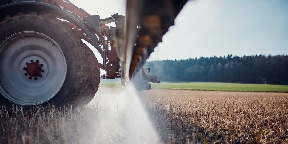 IMG Bild: Umstrittene Mittel: Pestizidspritze im Einsatz auf einem Feld bei Göttingen