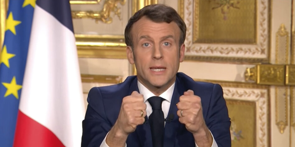 > Frankreichs Präsident Emmanuel Macron verkündet eine 14-tägige