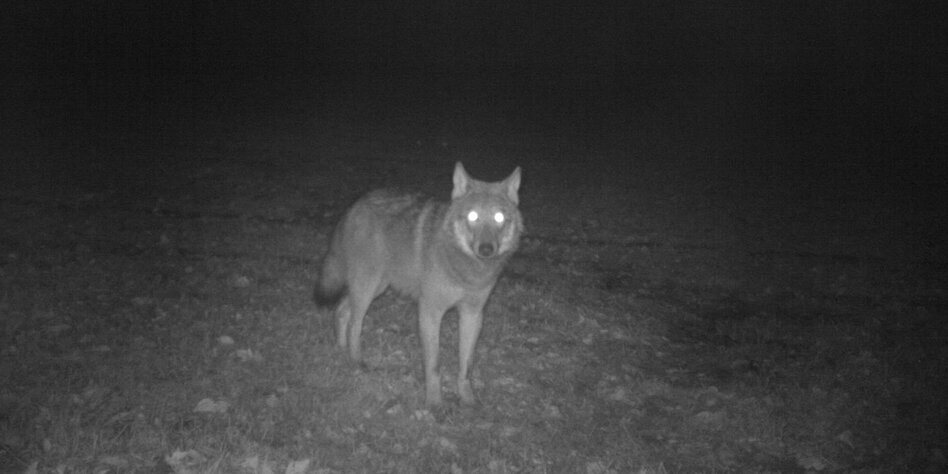 IMG Bild: Lebt nicht nur im Wald: ein Wolf in einer Fotofalle in Schleswig-Holstein