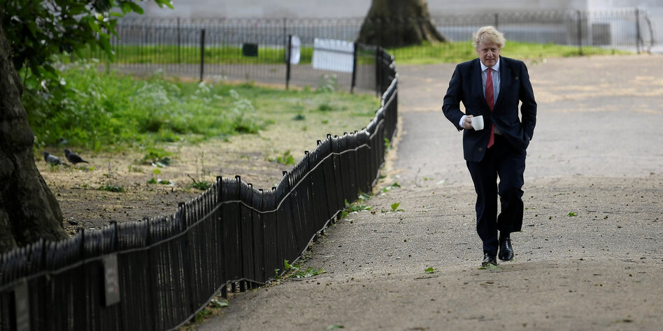 > Premier Boris Johnson hat erste vorsichtige Lockerungen angekündigt. Ab