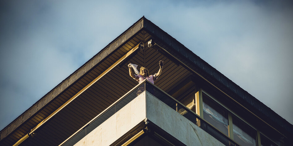 IMG Bild: Evelyn Alexander ist begeisterte Dwellerin. Hier winkt sie zum Abschied von ihrem Balkon