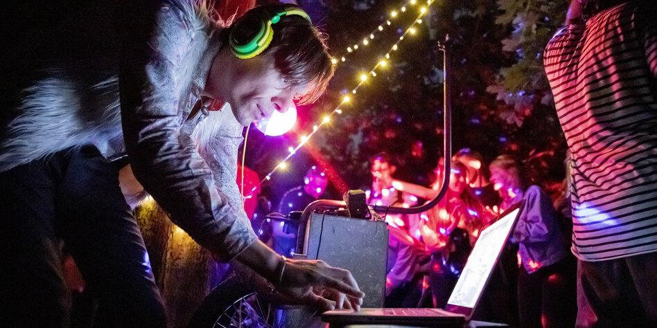 IMG Bild: Zum Tänzchen im Park: DJ Himself legt im Volkspark Hasenheide bei einer Party auf
