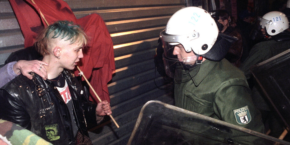 IMG Bild: Die Probleme waren realer und handgreiflicher Natur: Punk und Polizist in Berlin 1992