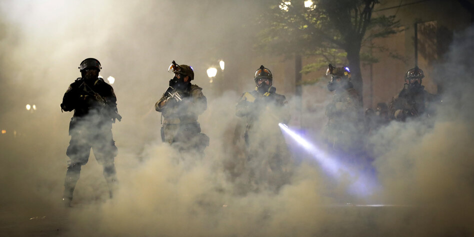 örtlichen Behörden [1][in die Stadt Portland entsandten Sicherheitskräfte
