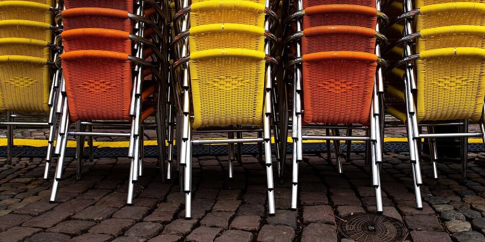 IMG Bild: Auf dem Rathausplatz in Freiburg am Donnerstag: Die Stühle eines Eiscafés sind schon hochgestellt