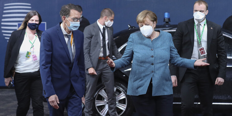 Im Streit mit Ungarn und Polen spielt Merkel auf Zeit. [3][Statt sich laut