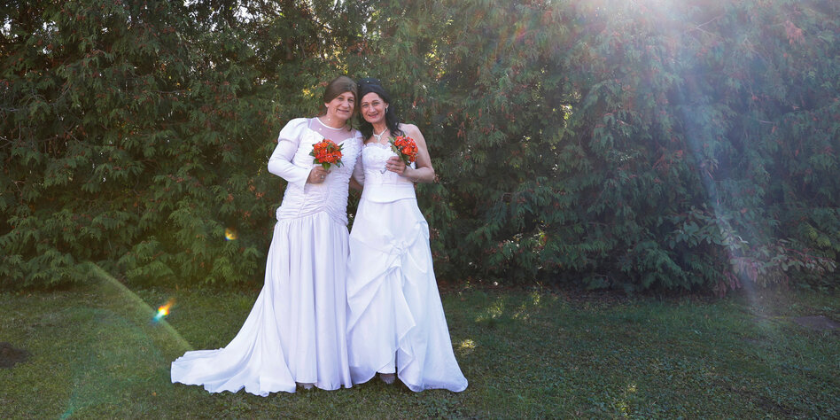 IMG Bild: Das trans* Paar Elvira Angyal und Tamara Csillag bei ihrer Hochzeit in Ungarn im November