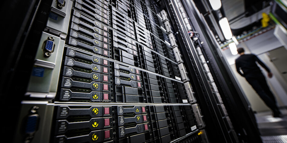 IMG Bild: In den USA hat ein Hackerangriff offenbar große Schäden angerichtet; Serverschrank in Rechenzentrum