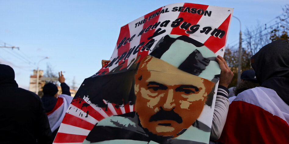 IMG Bild: Hauptsache, er ist weg: Ein Lukaschenko-Protest-Plakat in Minsk