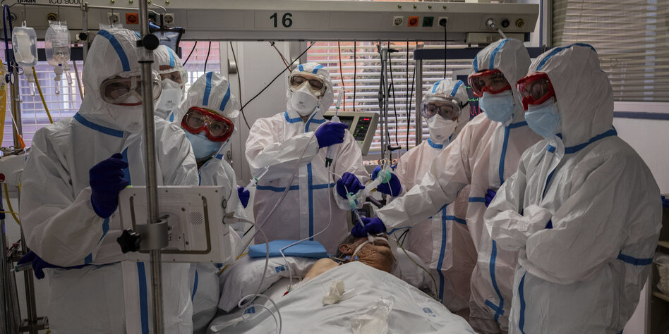der Intensivbetten sind mit Covid-Fällen belegt. Tag für Tag sterben