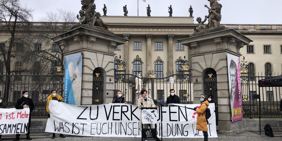 IMG Bild: Lieber mal wieder Hörsaal statt Online-Seminare: Studierende bei Protestaktion vor der HU