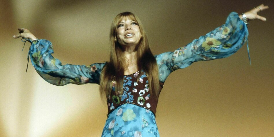 IMG Bild: Ein Kleid, blau wie der blaue Planet: Katja Ebstein bei einem Fernsehauftritt in den 70ern