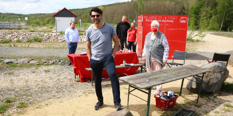 IMG Bild: Plötzlich Aufwind: Der sächsische SPD-Bundestagskandidat Harald Prause-Kosubek mit GenossInnen