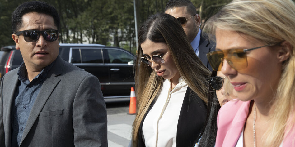 IMG Bild: Emma Coronel Aispuro (M), Ehefrau des vor einem US-Gericht angeklagten „El Chapo“ Guzman