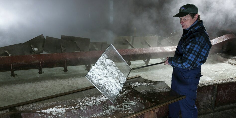 Jörg Bethmann nicht ohne Stolz. Außerdem gibt es das Salz auch bei